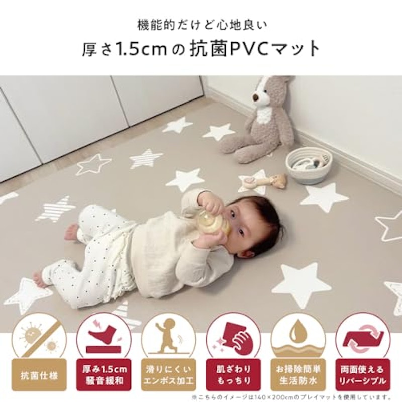 赤ちゃん プレイマット もっちり リバーシブル おしゃれ 防水 ベビー プレイマット 床暖房対応 おすすめ プレイマット 2畳 ラグマット 厚み200x140x1.5cm。
