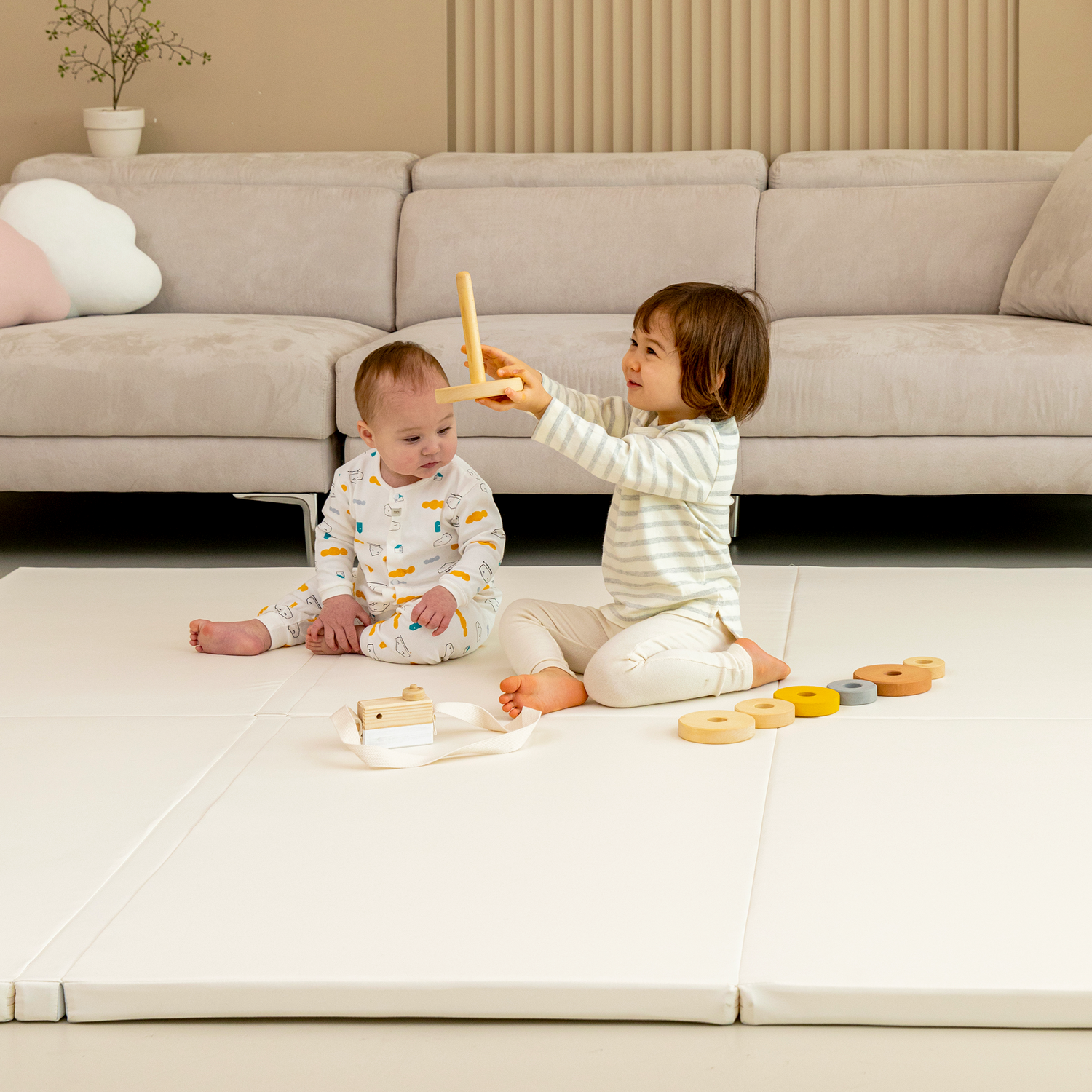 プレイマット 折りたたみ 大判 防音 防水 滑り止め 床暖対応 ホワイト ベージュ ベビー キッズ 2畳 ベビーマット 250×200 キッ –Branchée Beauté。