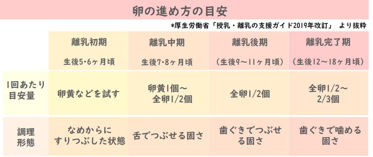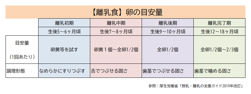 詳細版 卵はいつから?離乳食の進め方 - 母子栄養協会。
